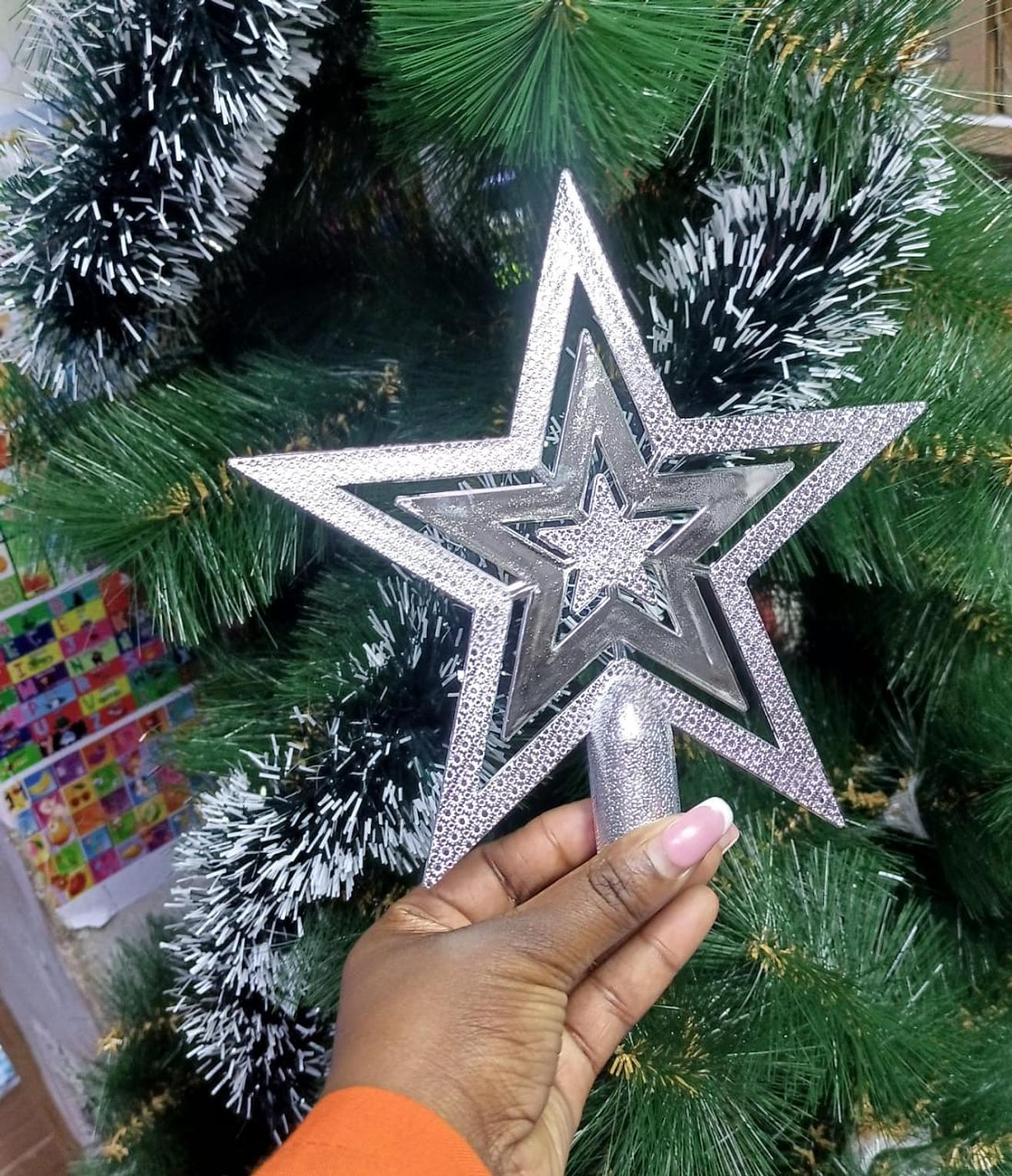 Christmas tree topper Kenya, silver star ornament buy, festive tree decor Nairobi, holiday star topper Mombasa, affordable Christmas decor Jumia, shiny metallic tree star, easy attach Christmas topper, Kenyan holiday ornaments, sparkling tree finial, Christmas decor online Kenya
