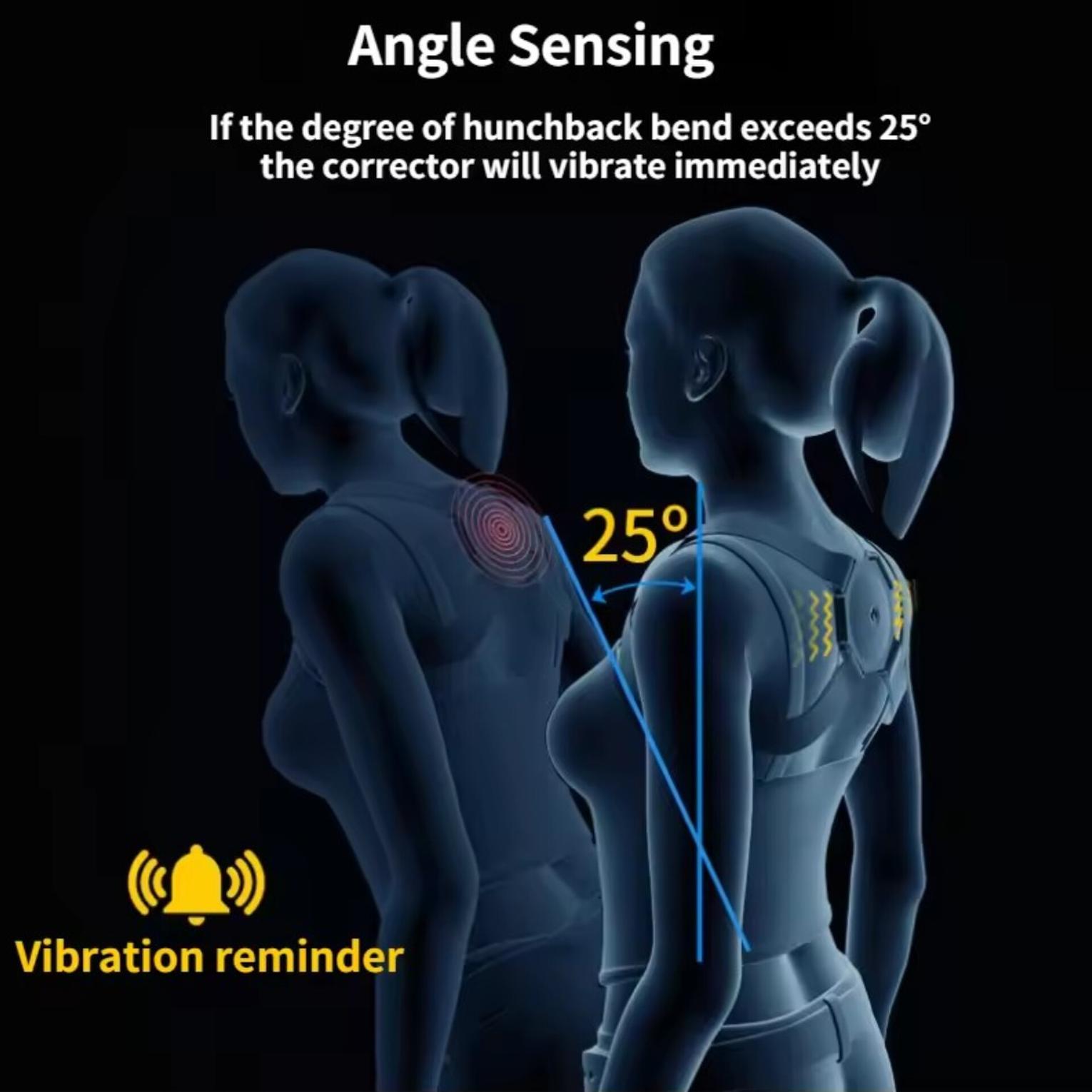 Smart back posture corrector with vibration sensor. easily get perfect confident posture - start standing, sitting much straighter align your shoulders, spine and upper back improve posture & reduce slouching immediately with easily adjustable dual strap design. lightweight high elasticity nylon corrector can be worn comfortably under or over clothing. eliminates neck and back discomfort from sitting with rounded shoulders in front of the computer. wear all day to retrain your posture- it's nearly invisible when wear under a shirt. electric posture corrector back brace spine stretcher lumbar vibration massager spine deck backbelt support usb rechargeable.