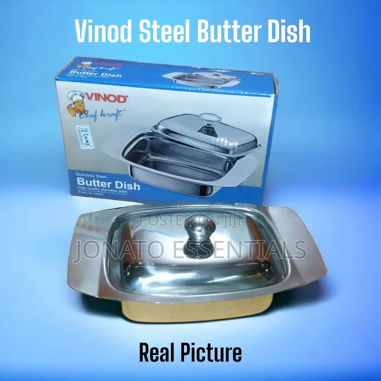 Vinod stainless steel butter dish keeps butter fresher for longer and at the right consistency for spreading. unbreakable and can be kept in the fridge or freezer. multi-purpose usage: can be used for cake, dessert, bread and small fruits storage as well, suitable for hotel, restaurant, buffet, bar, etc. stainless steel butter dish cake dessert bread serving tray buffet food container furit salad steak storage box.
