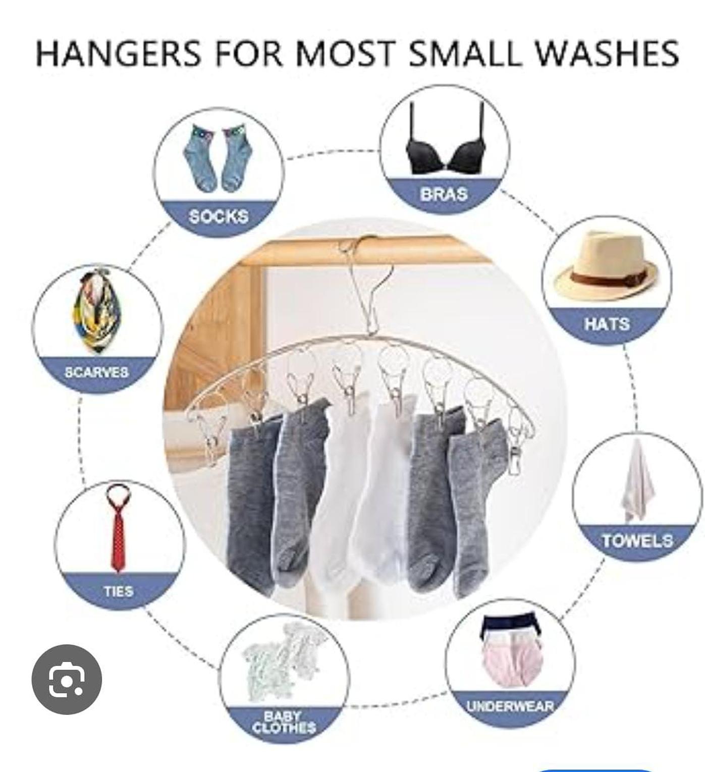 Used to hang socks, ties, underwear and other small clothings. clothes holders. stainless steel sock rack with windproof curved 8-clip solid clothes rack multifunctional dual-purpose clothes rack.