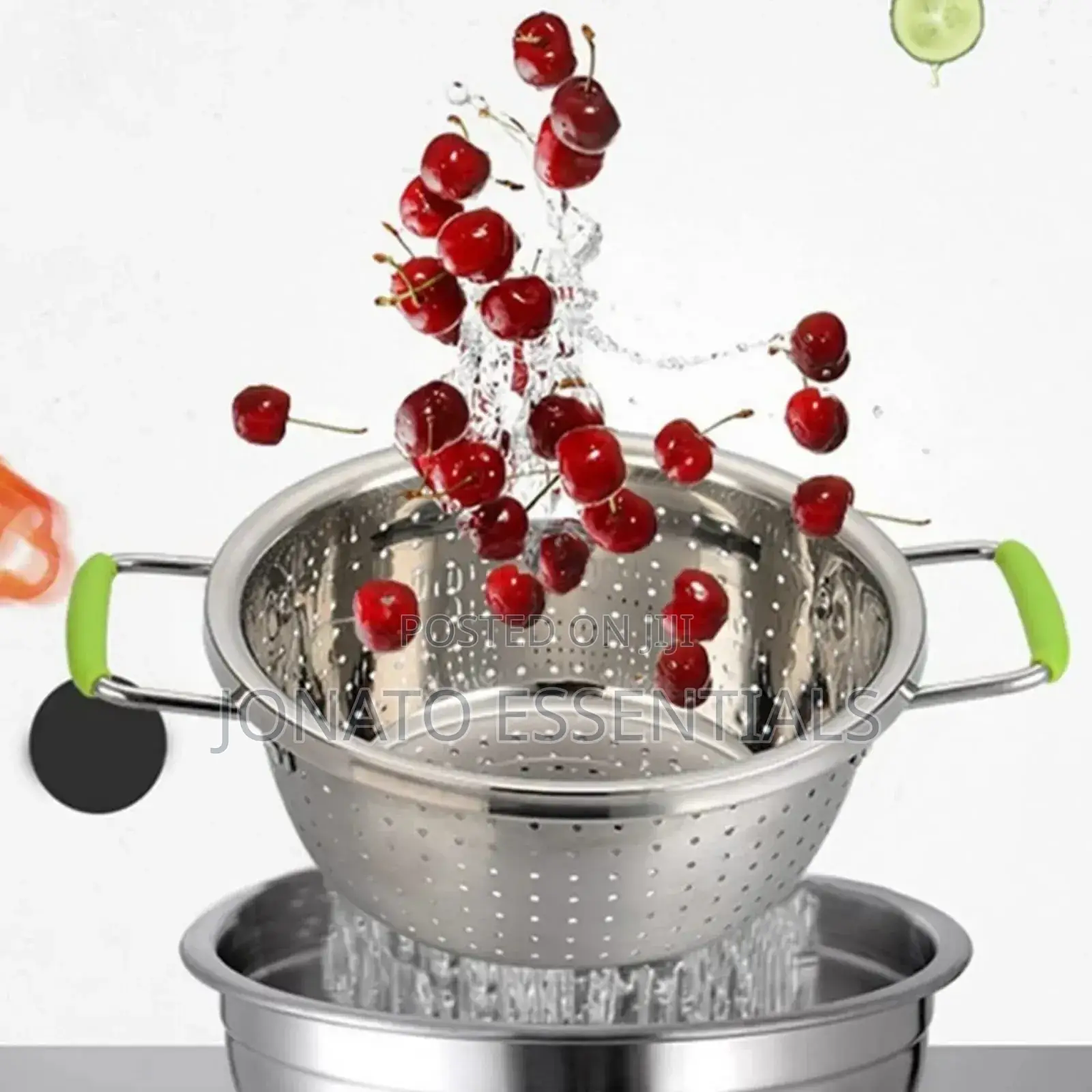 Stainless steel kitchen drain basin, vegetable strainer collander quick draining - micro-perforated colander with small closely spaced holes means your food won't pass through the holes and it drains fast without having to tilt the bowl to get all of the water out. extremely versatile - you can literally use the metal colander for every food. get rid from the frill water and oils of your pasta in a few seconds or clean your potatoes, tomatoes, berries and every other vegetable and fruit effortlessly. in addition, you can use this kitchen accessory as a countertop container, plate or displayer and save space! stainless steel double-handle drain basin drain basket for washing rice and vegetable kitchen supplies food strainer