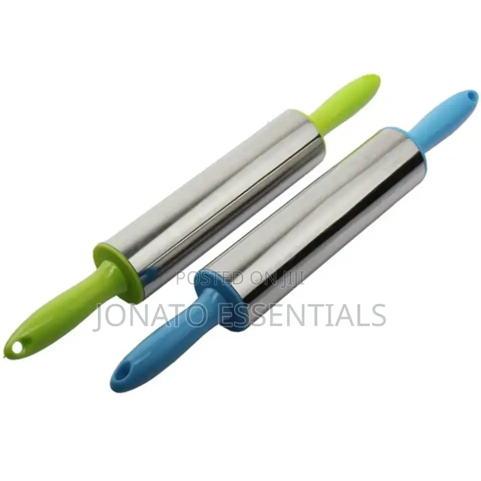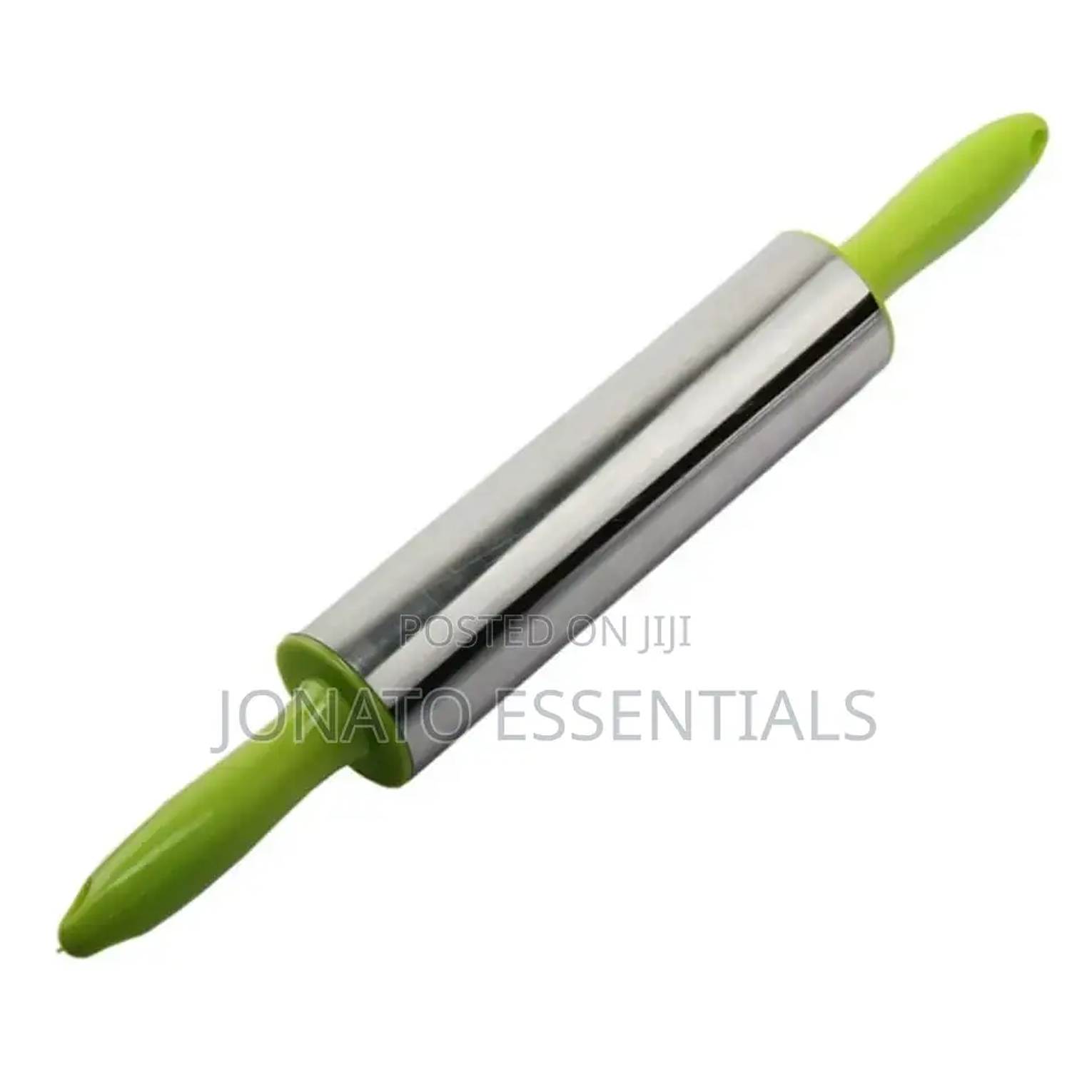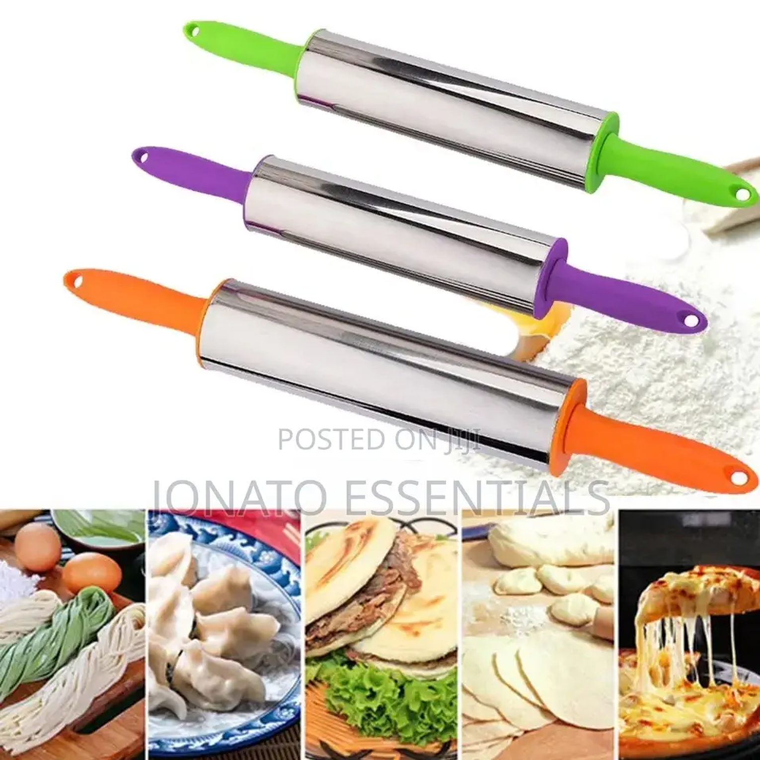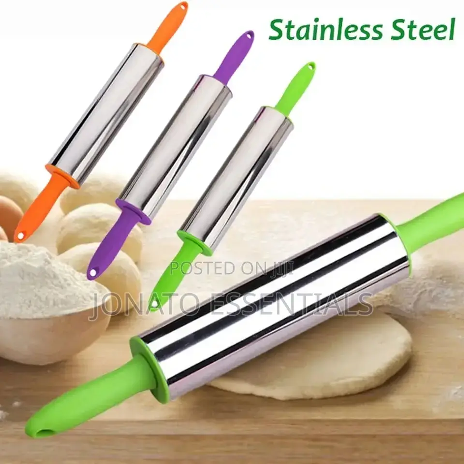 Stainless steel rolling pin used to bake and roll dough to desired size and shape. made of stainless steel. it is non stick. stainless steel rolling pin non stick pastry roller with handles baking cookies biscuit fondant cake dough engraved roller.
