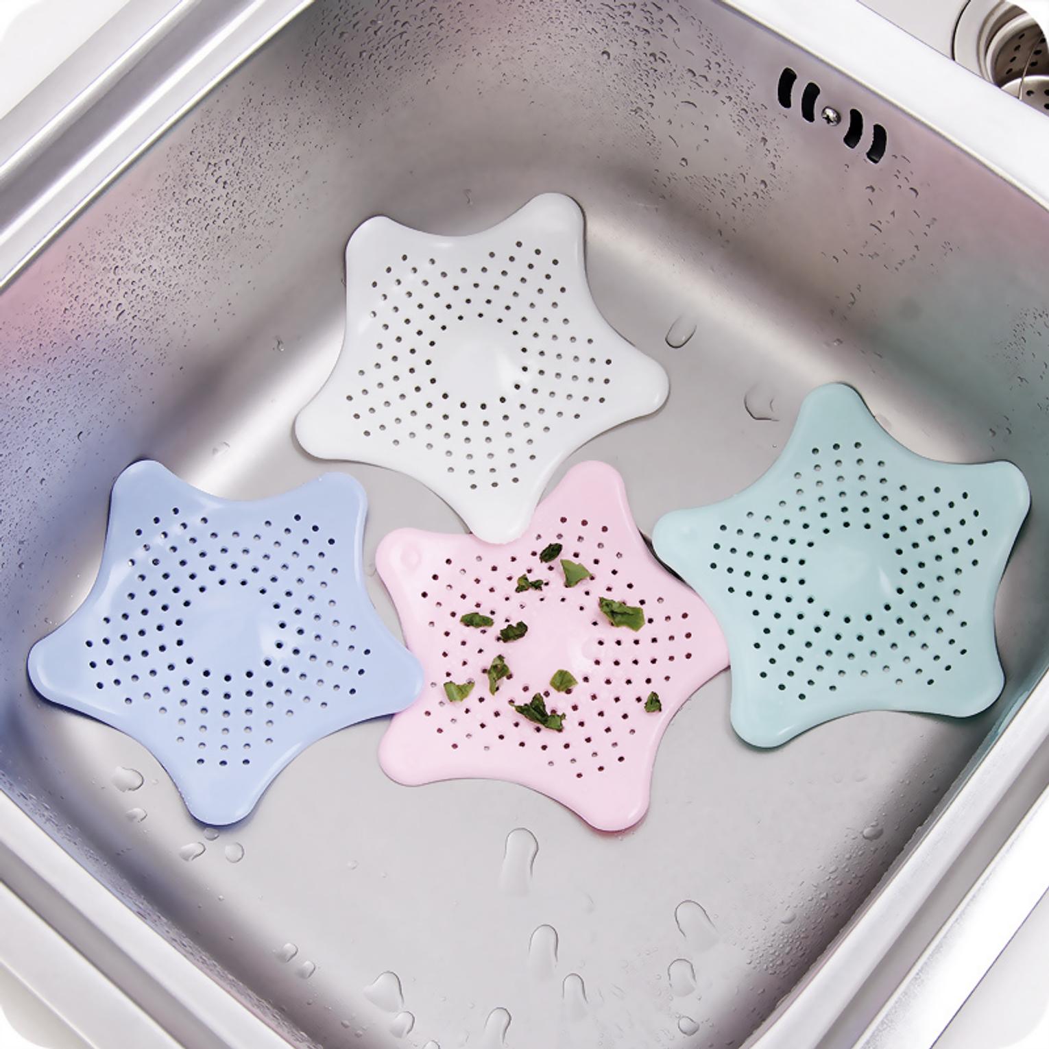Star shaped sink or bathroom drain strainer easy to use and clean, great ideal for home accessory. high quality material provides strong suction, no shifting.-prevent objects from falling into the drainage. suitable for washbasin washing room ,toilets, bathroom,kitchen bath sink drain hair catcher bath stopper plug sink strainer filter shower sink strainer anti-clogging kitchen accessories.
