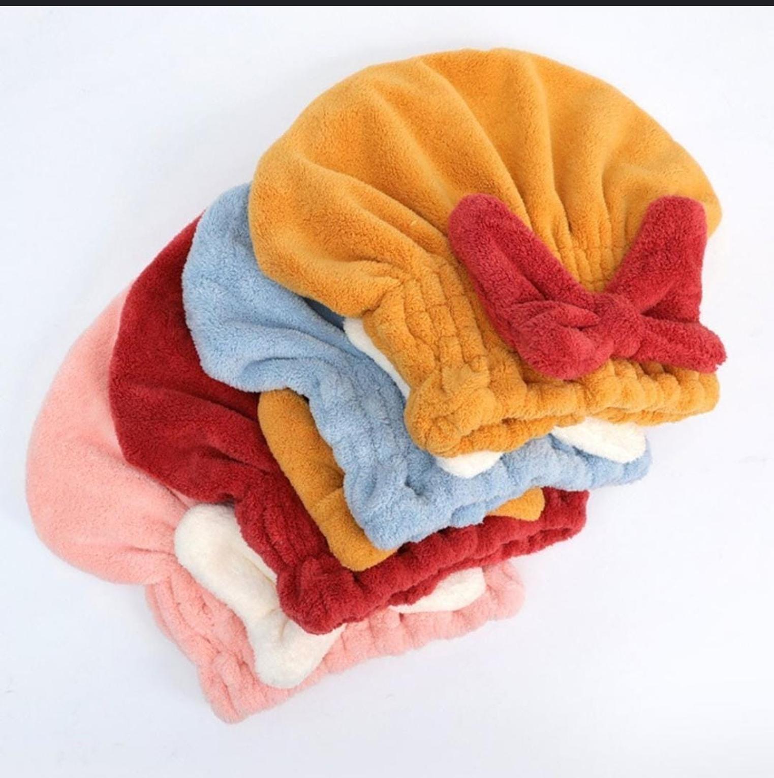 Super absorbent microfiber hair drying towel stretching velvet hair cap cover natural high-quality coral velvet fabric is selected, which is very soft, green and environmentally friendly, comfortable and skin-friendly,soft and fluffy, delicate and smooth, and fresh and comfortable for long-term use. the material is light and breathable, soft and skin-friendly, water-absorbing and quick-drying the shape is cute, soft and comfortable, it absorbs water instantly, and it is not easy to shed hair. microfibre quick hair drying bath spa bowknot wrap towel hat cap for bath bathroom accessories shower cap for women hair cap.