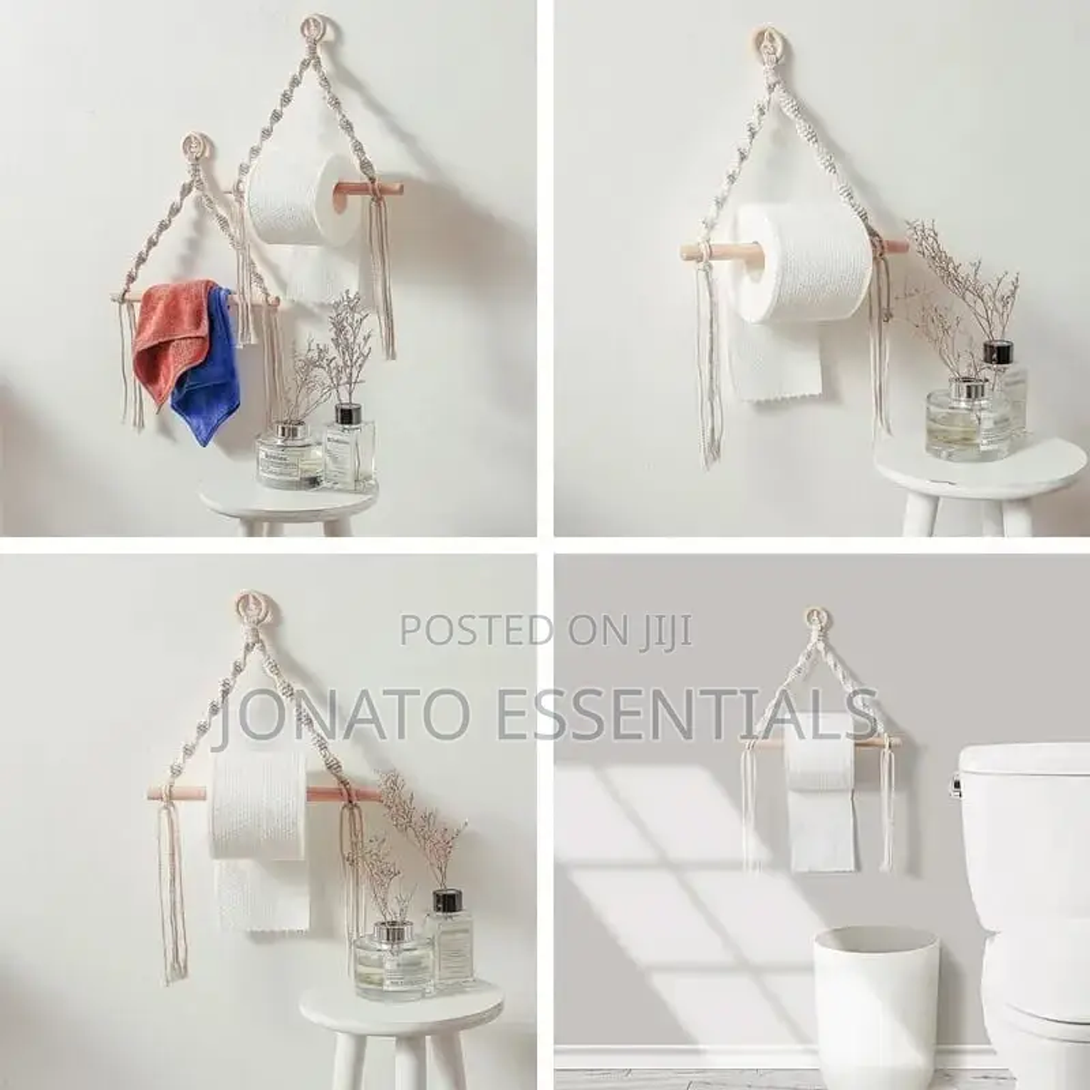 Tapestry toilet tissue paper, scarf and belt holder and organizer it can save space, no need to put paper towels on the table, you can put it on the wall, under the cabinet, inside the cabinet and on the door to save the kitchen, bathroom, toilet, pantry, utility room, laundry room, etc. space. toilet paper holder tapestry macrame vintage towel hanging rope toilet paper holder home hotel bathroom decoration.