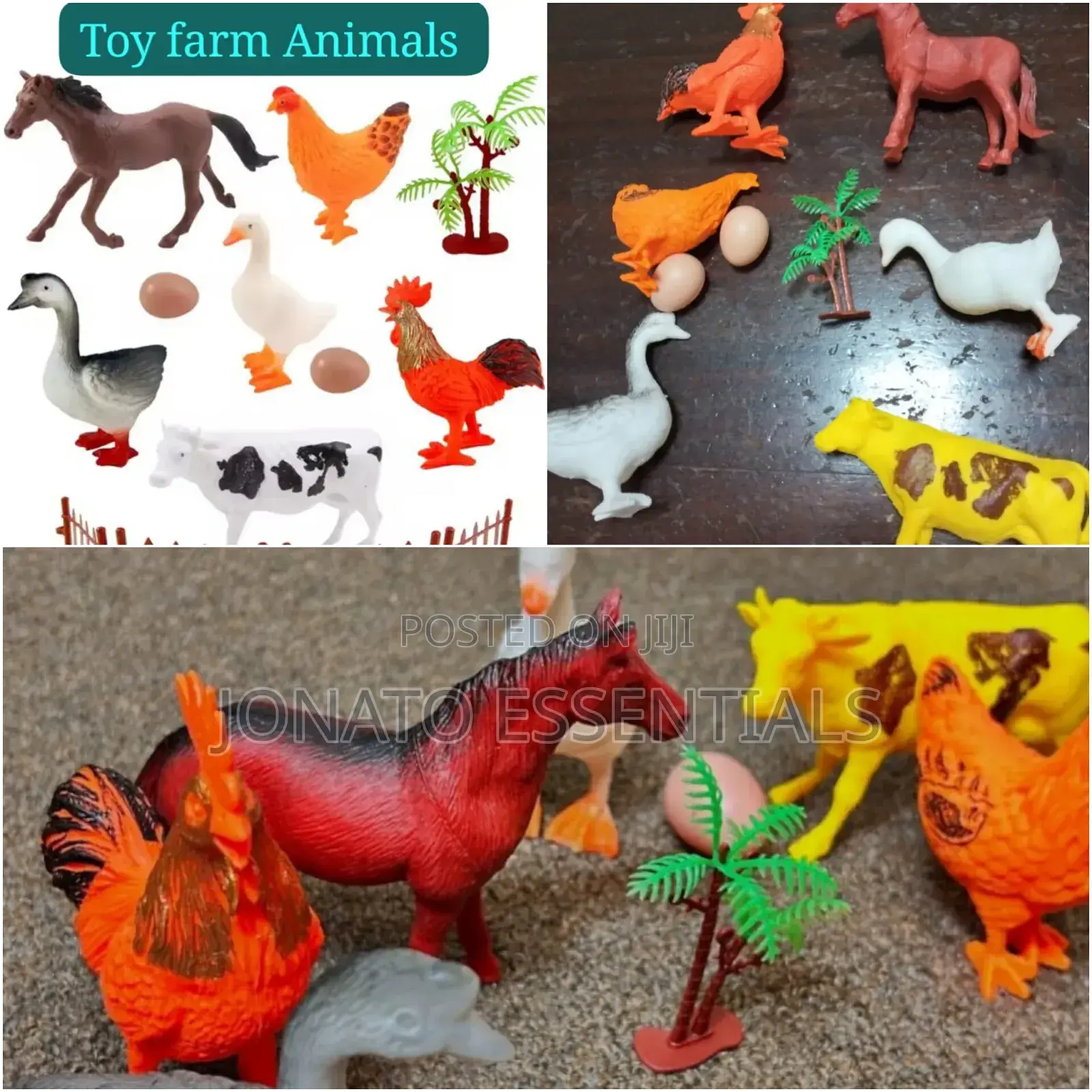 toy farm animals, miniature animals, farm figures, plastic animals, kids toys, educational toys, cake toppers, farm party decorations, diorama supplies, craft supplies, horse toy, cow toy, chicken toy, rooster toy, goose toy, eggs.