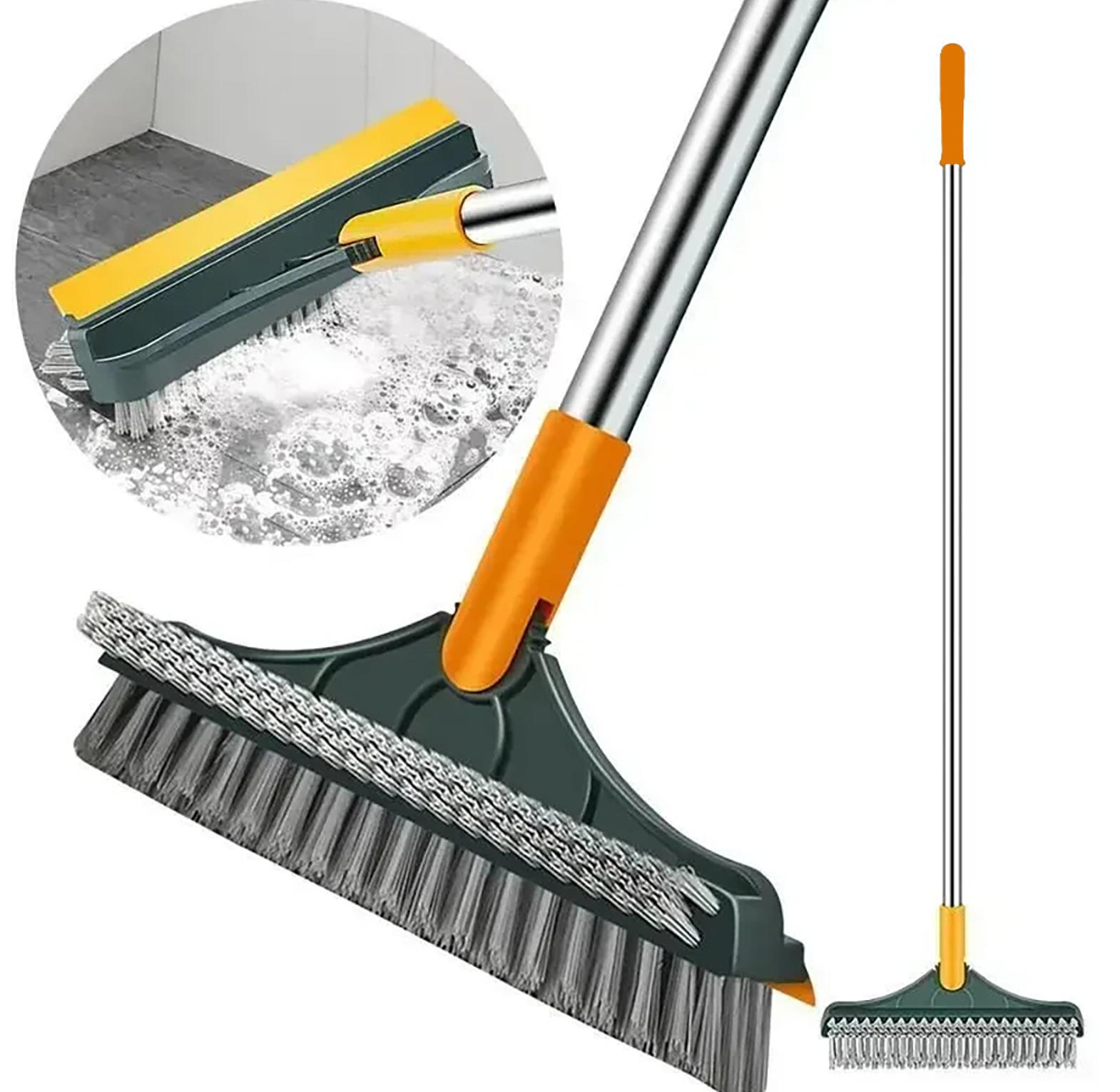 V-shaped floor brush scrubber 3 in 1 magic brush floor scrub brush the 3-in-1 floor scrub brush helps you easily remove the stain, stubborn grime, dirty water, and dust in the gaps, corners, recesses, grout lines, and crevices, improving the effectiveness for housework doing. the floor cleaning brush is wet or dry use, widely used for tile floors, hardwood floors, glass surfaces, and cement floors like tubs, bathrooms, kitchens, showers, walls, garages, and patios. floor scrub brush telescopic handle 3 in 1 scrape brush stiff bristle shower scrubber for cleaning patio garage bathroom kitchen.