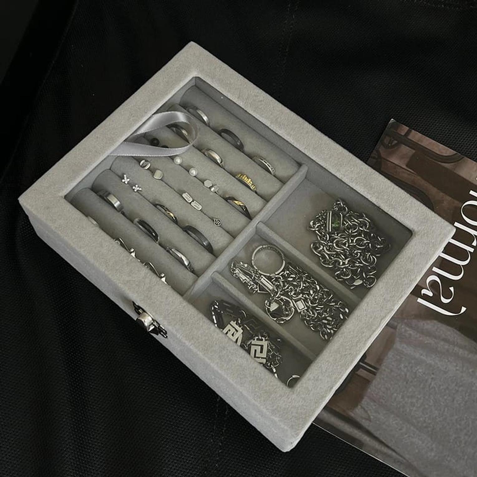 Elegant velvet ring display and jewelry organizer with clear lid jewelry storage box showcase and protect your precious rings and small jewelry with this sophisticated velvet display box. this versatile jewelry case is perfect for organizing rings, earrings, small necklaces, and other delicate items. its sleek design makes it a wonderful addition to any dresser, vanity, or retail counter. jewelry box, ring display case, velvet jewelry organizer, clear lid jewelry box, jewelry storage, ring organizer, earring holder, small jewelry case, display case, jewelry tray, velvet ring box, glass top jewelry box, jewelry gift, elegant jewelry box, retail display, jewelry storage solution, travel jewelry case (for similar smaller options), compact jewelry organizer. home jewelry display box with covered necklace ring jewellery organizer