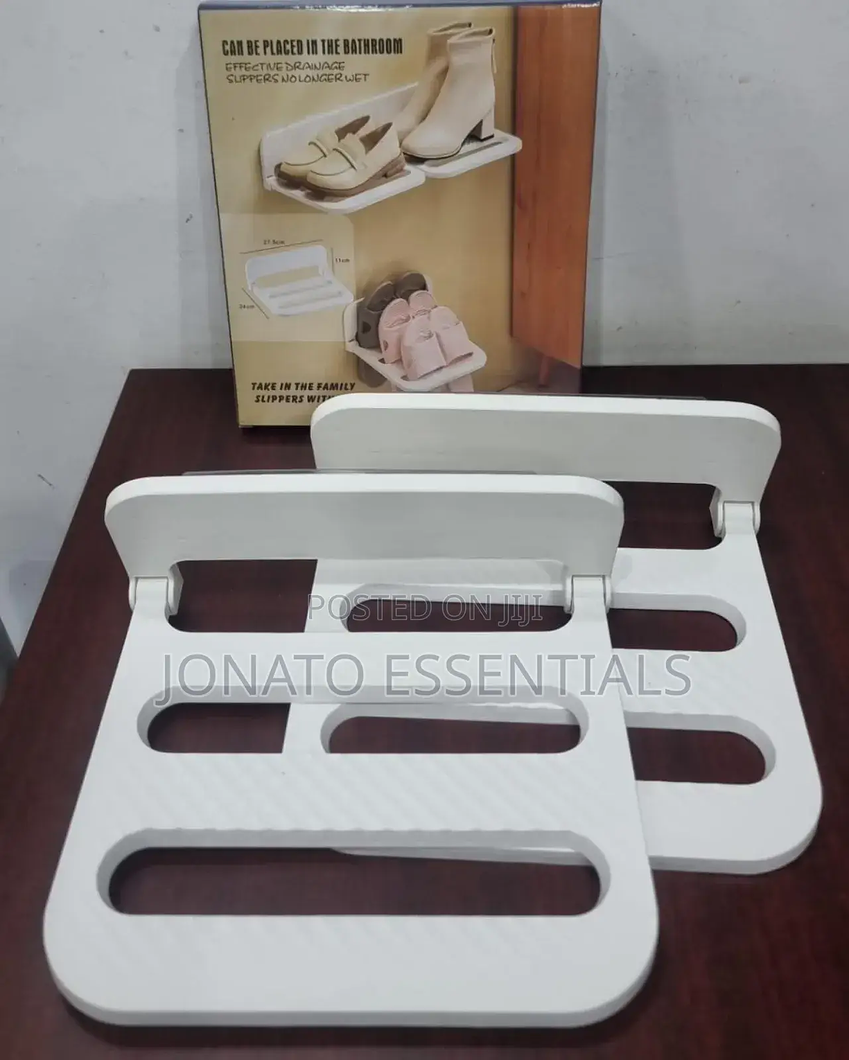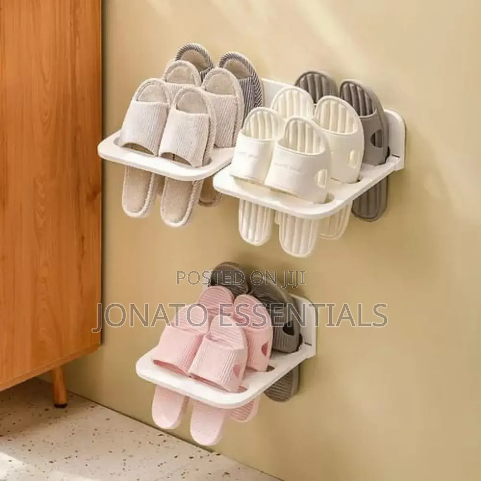 Wall-mounted folding shoe rack, bathroom slipper rack 2in1 adhesive wall mounted folding bathroom slippers and crocs storage rack easy installation: simply wipe the wall, stick the double sided tape, peel off the protective film from the traceless sticker, press it in clockwise to expel air. no drilling required. wall-mounted folding shoe rack, bathroom slipper rack, simple doorstep, beautiful indoor home storage artifact, wall hanging.