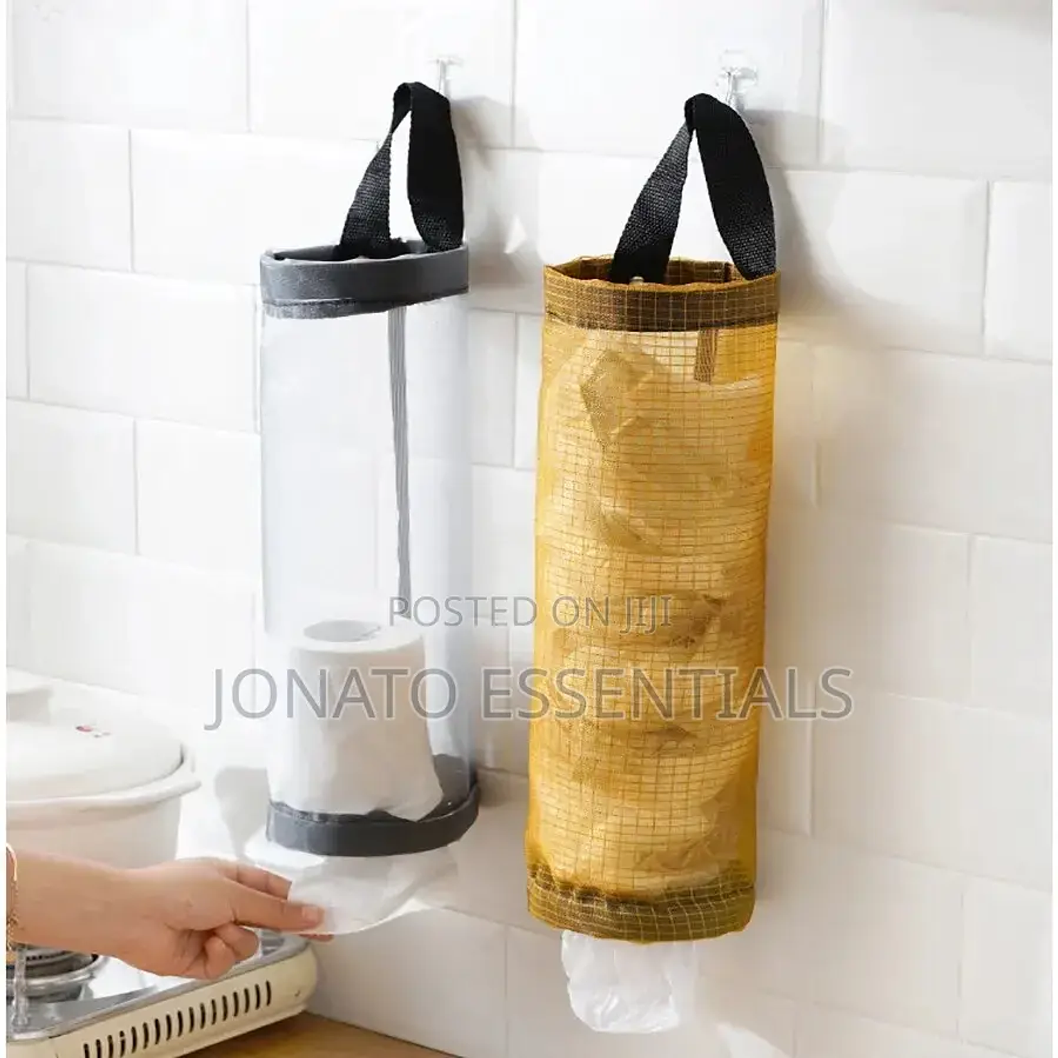 Wall-mounted garbage bag storage organizer trash hanging storage bags. polyester mesh cloth, small and convenient, bottom outlet design, easy to use, can store garbage bags, disposable shoe covers, etc. wall mounted design :its wall-mounted design saves space and allows for easy access, making it perfect for behind doors or on walls. wall mount plastic bag holder dispenser hanging storage trash garbage bag kitchen garbage organizer
