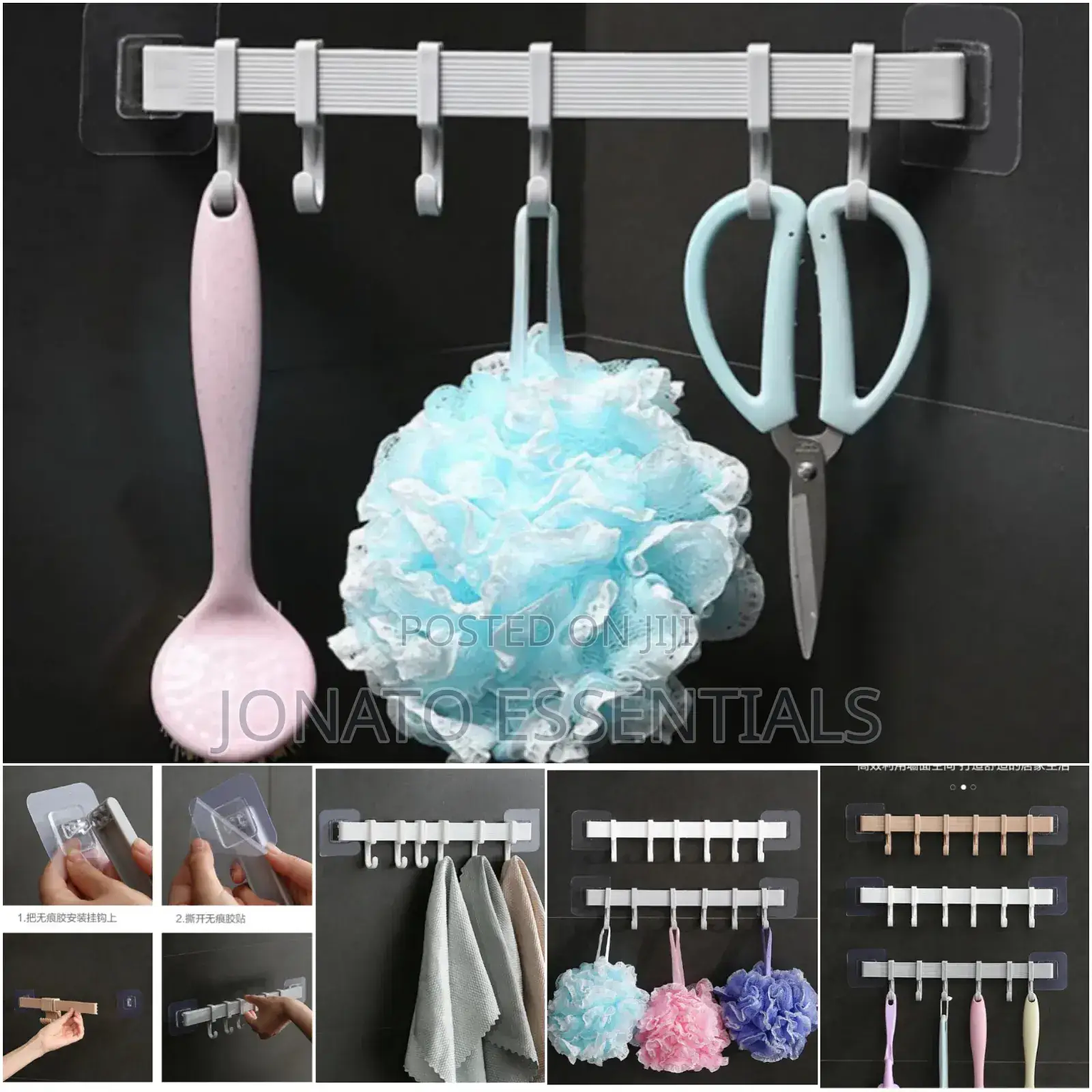 wall-mounted hook rack, adhesive hanger, rotating hooks, kitchen organizer, bathroom storage, space-saving hanger, wall-mounted storage, multipurpose rack, home organizer, waterproof hook strip, strong adhesive hooks.