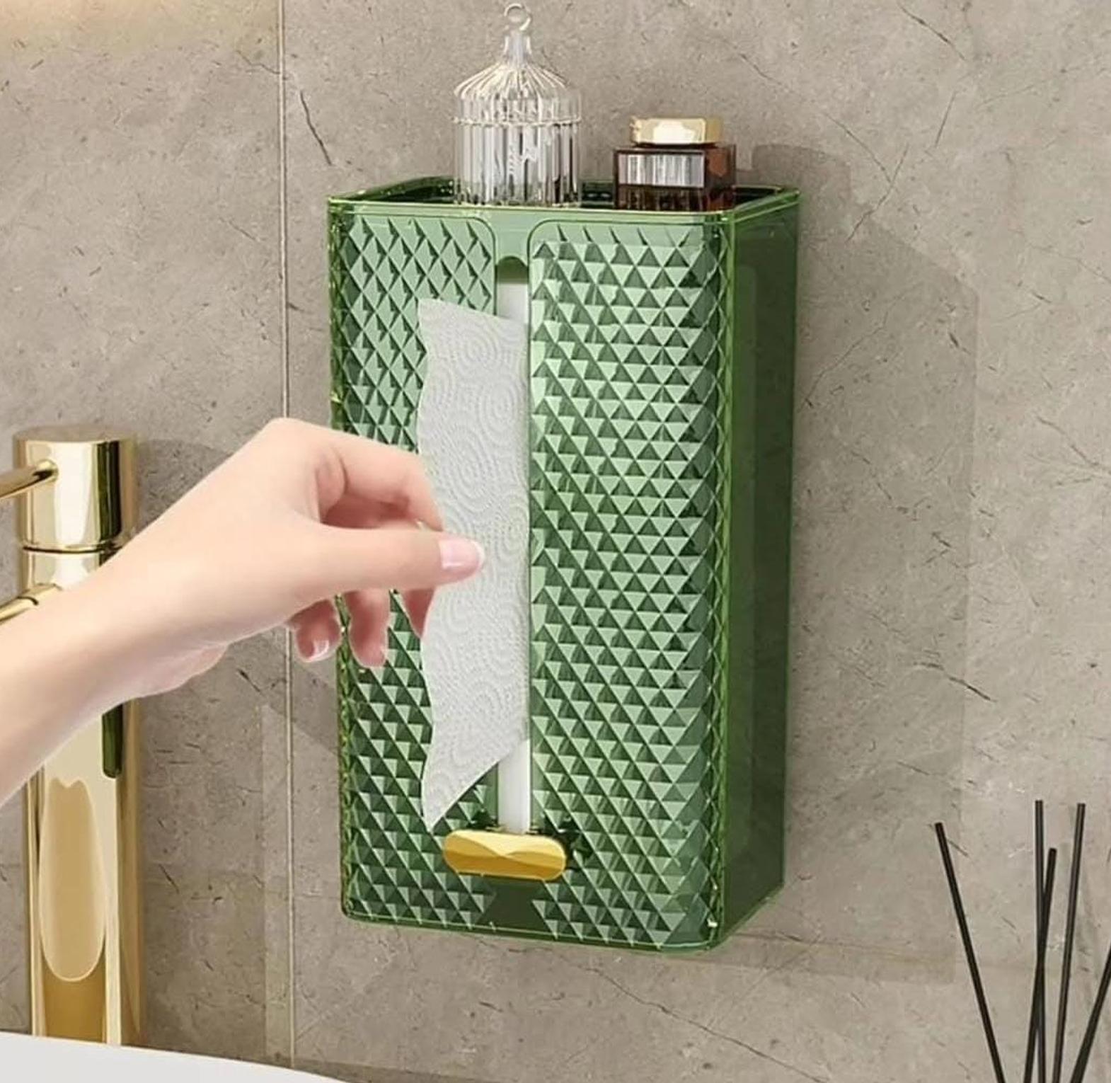 Wall mounted tissue and napkin storage box adhesive sticker wall mounted elegant diamond tissue box say goodbye to unsightly tissue boxes with this toilet, bathroom, kitchen draw hole tissue box. its sleek design and easy mounting options make it a versatile choice for any room in your home. keep all of your essential supplies organized with this kitchen bathroom bedroom office accessories mounting type self-adhesive. its convenient self-adhesive backing makes installation a breeze, while the multiple compartments provide ample storage space for all your necessities. plastic paper towel box, patterned wall mounted tissue paper holder, washcloth box, toilet, bathroom, kitchen draw hole tissue.